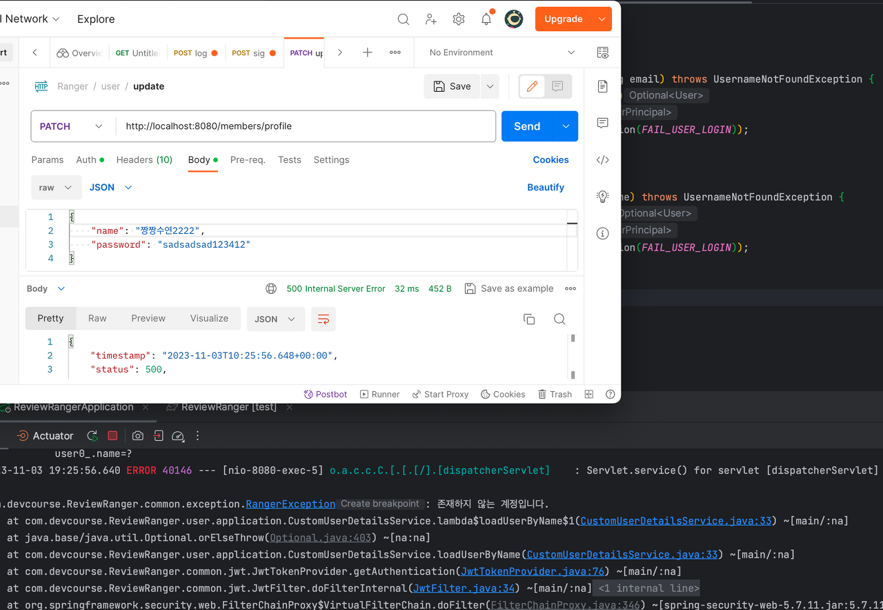 근데 findByName으로 바꾸니까 자꾸 존재하지 않는 계정으로 오히려 login에서 터지기 시작했다..