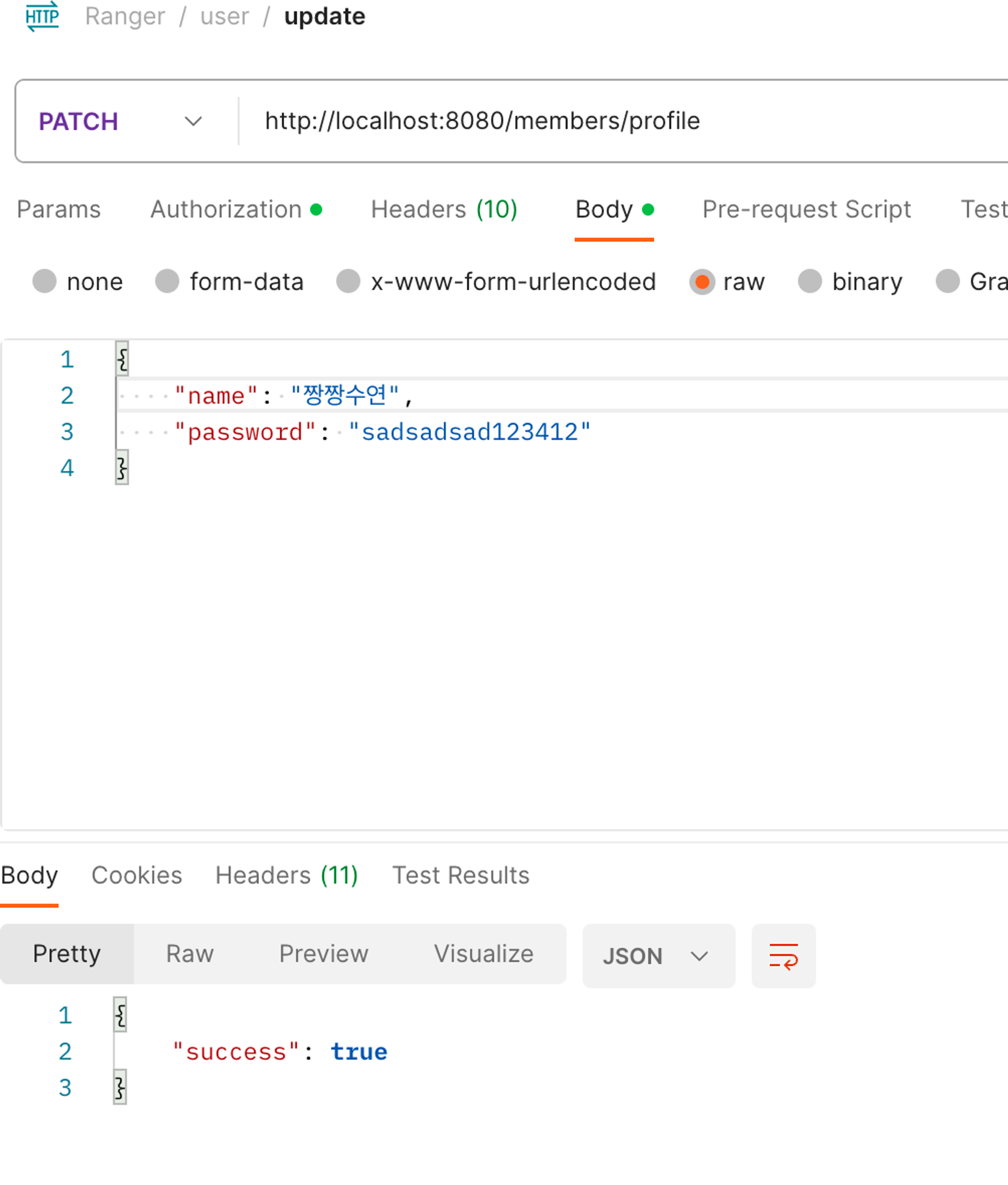 처음에는 장수연으로 가입하고 유저정보를 바꾸려고 하면 username이 장수연으로 식별되어 정보가 바뀔 수 있다