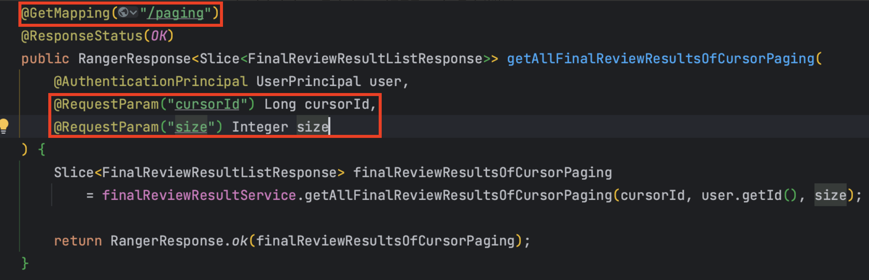 = finalReviewResultService.getAllFinalReviewResultsOfCursorPaging(pagingFinalReviewRequest.cursorId(),