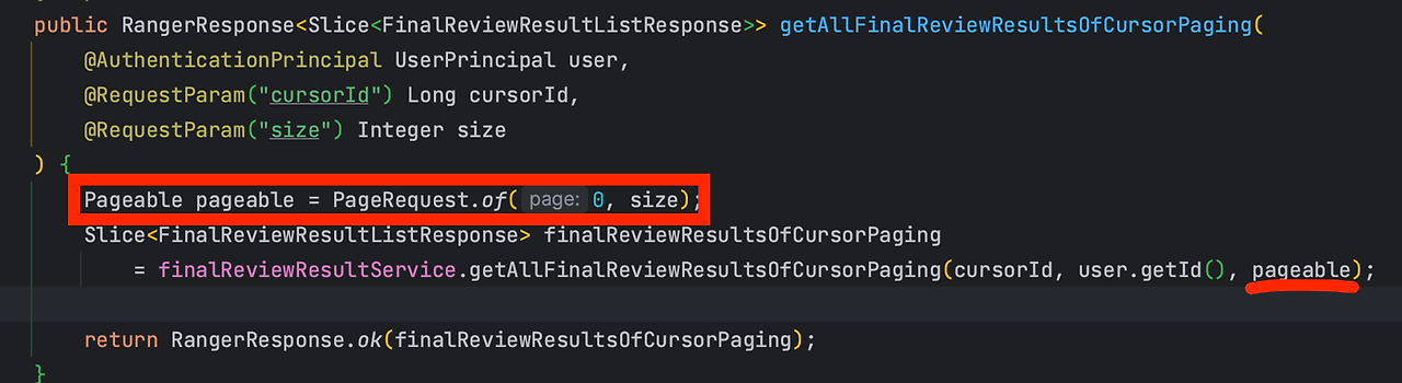 public Slice<FinalReviewResultListResponse> getAllFinalReviewResultsOfCursorPaging(Long cursorId, Long userId,