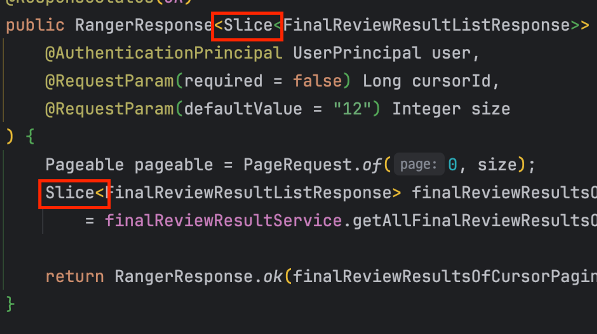 이번 게시글의 주제는 '페이징에 사용되는 Slice 객체가 외부에 노출되는 현상에 대한 개선안'입니다.