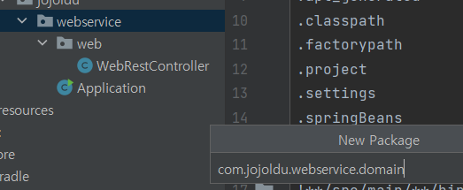 src > main > java > com > webservice 에 domain 패키지를 생성해줍니다.