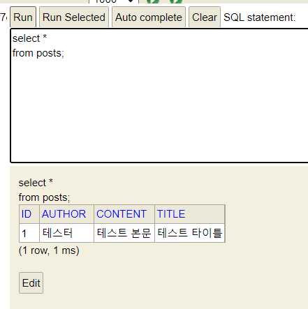 다시 조회해보면 포스트맨으로 전달한 데이터가 조회되는 것을 확인할 수 있습니다!