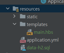 다른 서버 템플릿 스타터 패키지와 마찬가지로 Handlebars도 기본 경로는 src/main/resources/templates 가 됩니다.