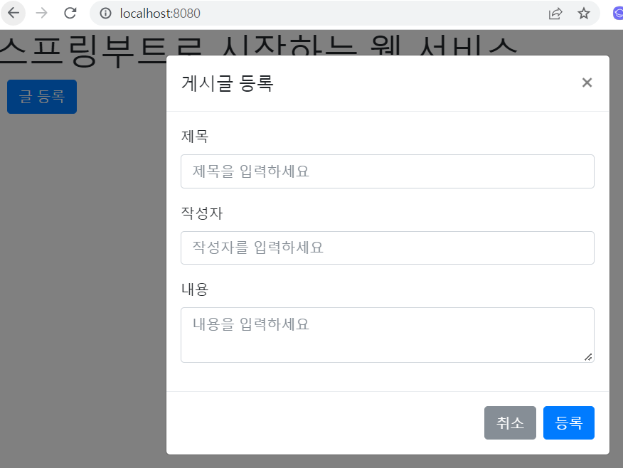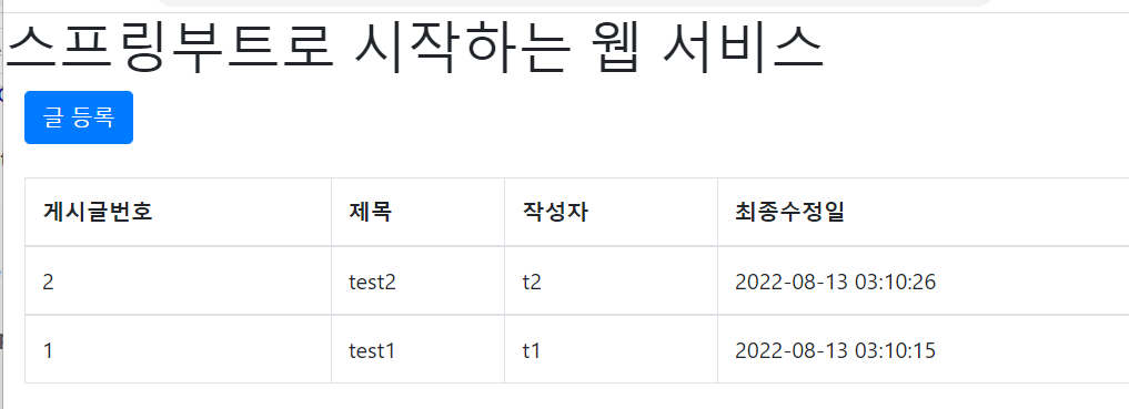 마지막으로 페이지를 접속해서 수동으로 글등록을하면 글목록이 출력됩니다.