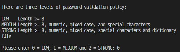 set global validate_password.policy=LOW;