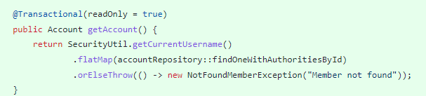 Account 객체를 가져오는 코드가 계속해서 중복되어 비효율적으로 똑같은 코드를 수행하는 부분이 많다.