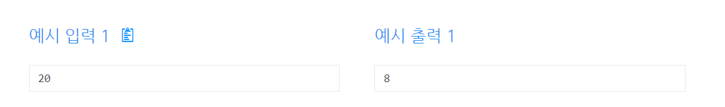 만약 20이 입력되면 1부터 20까지의 소수는 2, 3, 5, 7, 11, 13, 17, 19로 총 8개입니다.