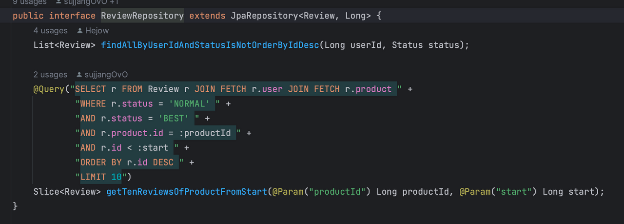 JPQL에 대해서는 이정도로 간단하게 넘어가고 Fetch Join을 사용하기 위해선 @Query 을 사용하여 쿼리를 직접 작성하면 된다.