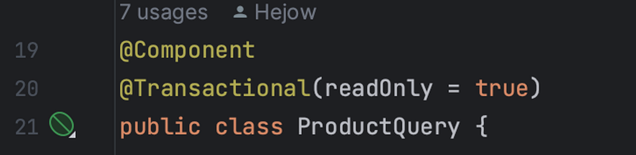 (트랜잭션은 상위 트랜잭션에 종속되어 합쳐져 동작하기 때문에 ProductQuery의 findProductByIdOrThrow메서드도 readOnly로 동작하는 것이다)
