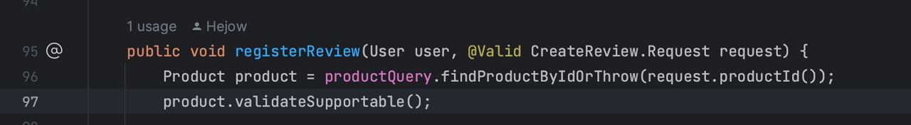 리뷰등록에서 필요한 Product 객체는 productQuery로 부터 얻어온다.